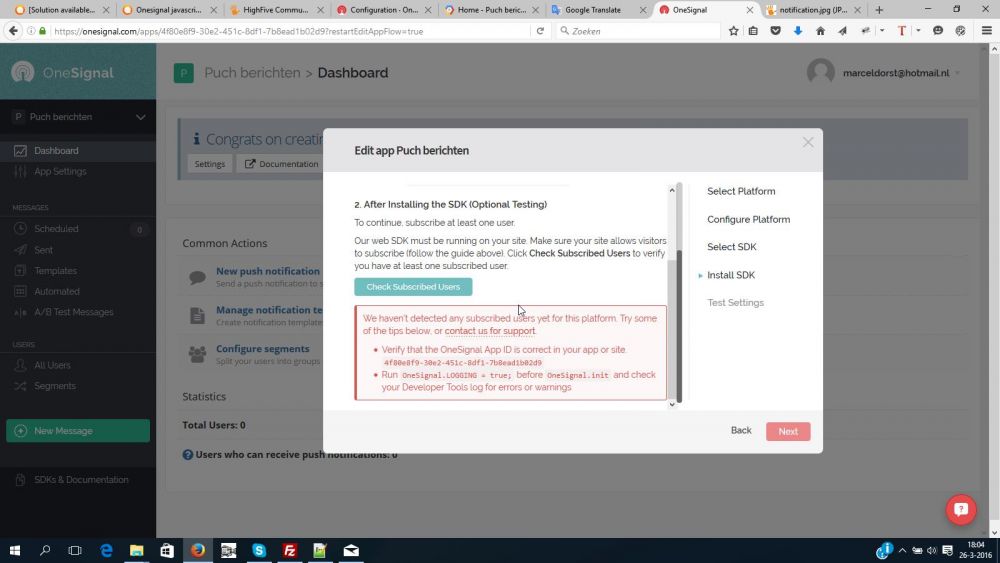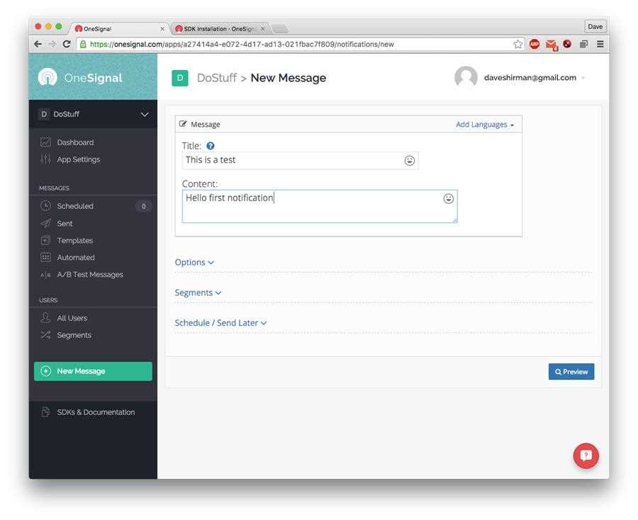 Back to OneSignal